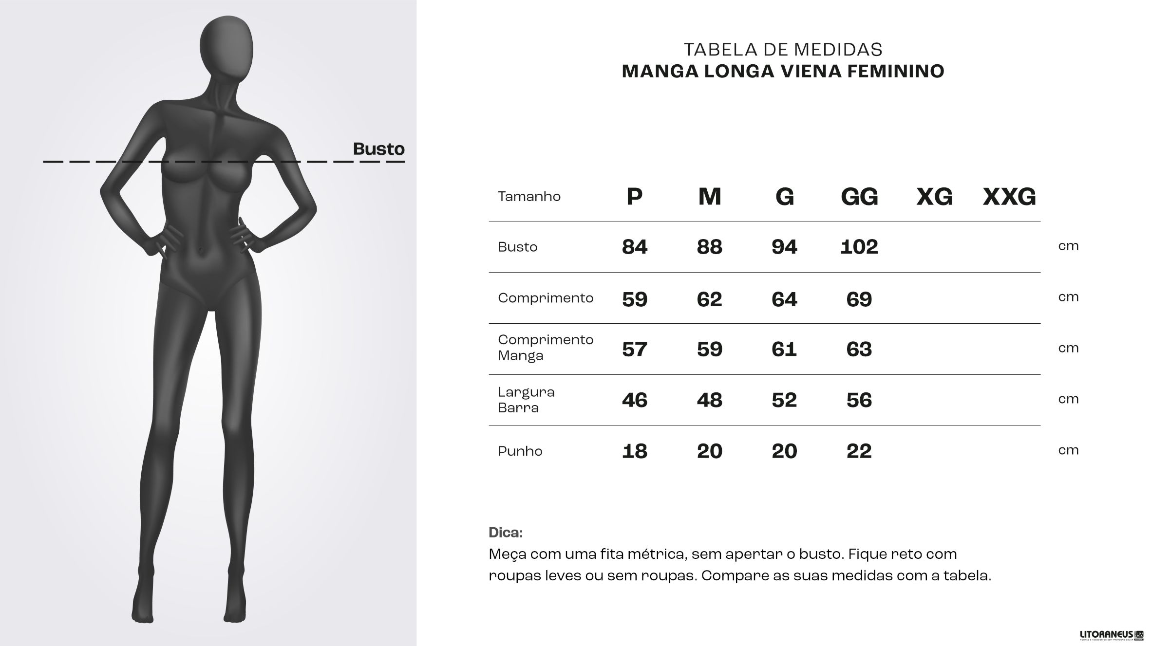 Conforto e proteção se encontram neste modelo de manga longa com caimento leve e toque suave. A Viena valoriza a silhueta feminina com um corte moderno e acabamento impecável, garantindo elegância até nos dias mais ensolarados.