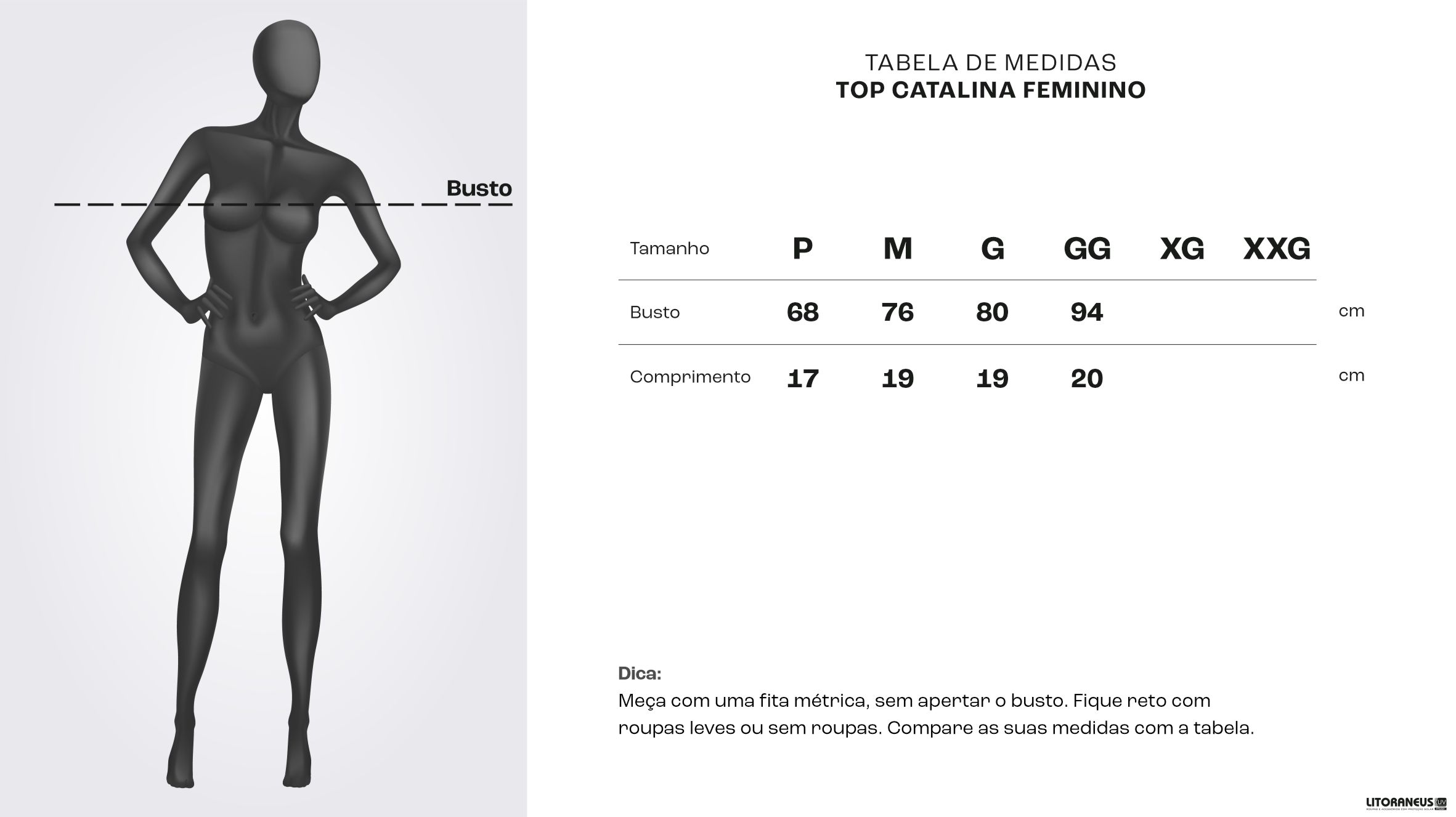 O Top Catalina é a escolha perfeita para quem busca proteção solar, conforto e um design moderno. Com tecnologia FPU 50+, ele bloqueia 98% dos raios UVA e UVB, garantindo segurança para sua pele nos dias ensolarados. Seu corte elegante e modelagem anatômica oferecem um ajuste perfeito ao corpo, proporcionando liberdade de movimento sem abrir mão do estilo. Versátil e sofisticado, o preto clássico torna esse top um curinga para qualquer ocasião, seja para prática esportiva, praia ou um look casual cheio de atitude.